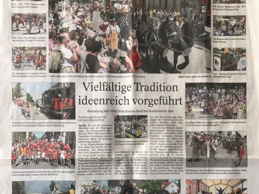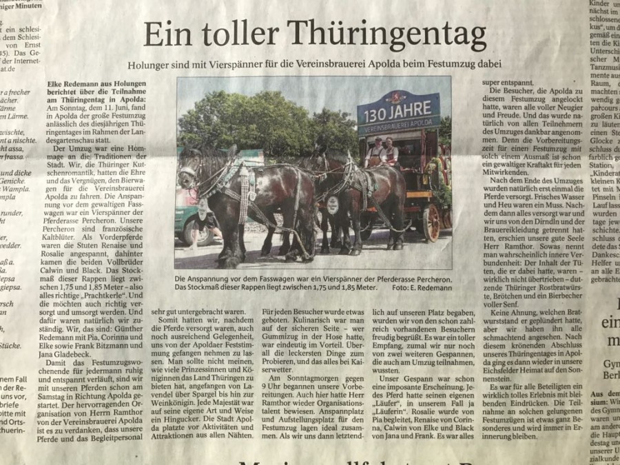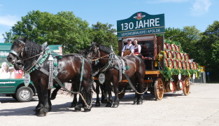 Hier sehen Sie unseren Bierwagen im Einsatz beim diesjährigen Festumzug anlässlich des Thüringentages in Apolda: