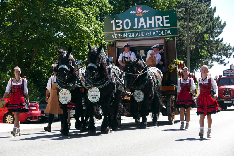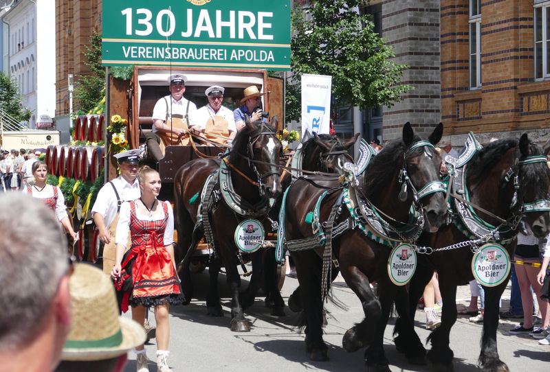 Hier sehen Sie den Bierwagen beim großen Festumzug anlässlich des Thüringentages 2017 in Apolda.